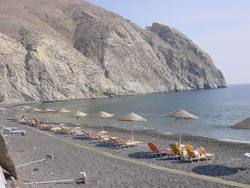 Pláž v letovisku Perissa - Santorini